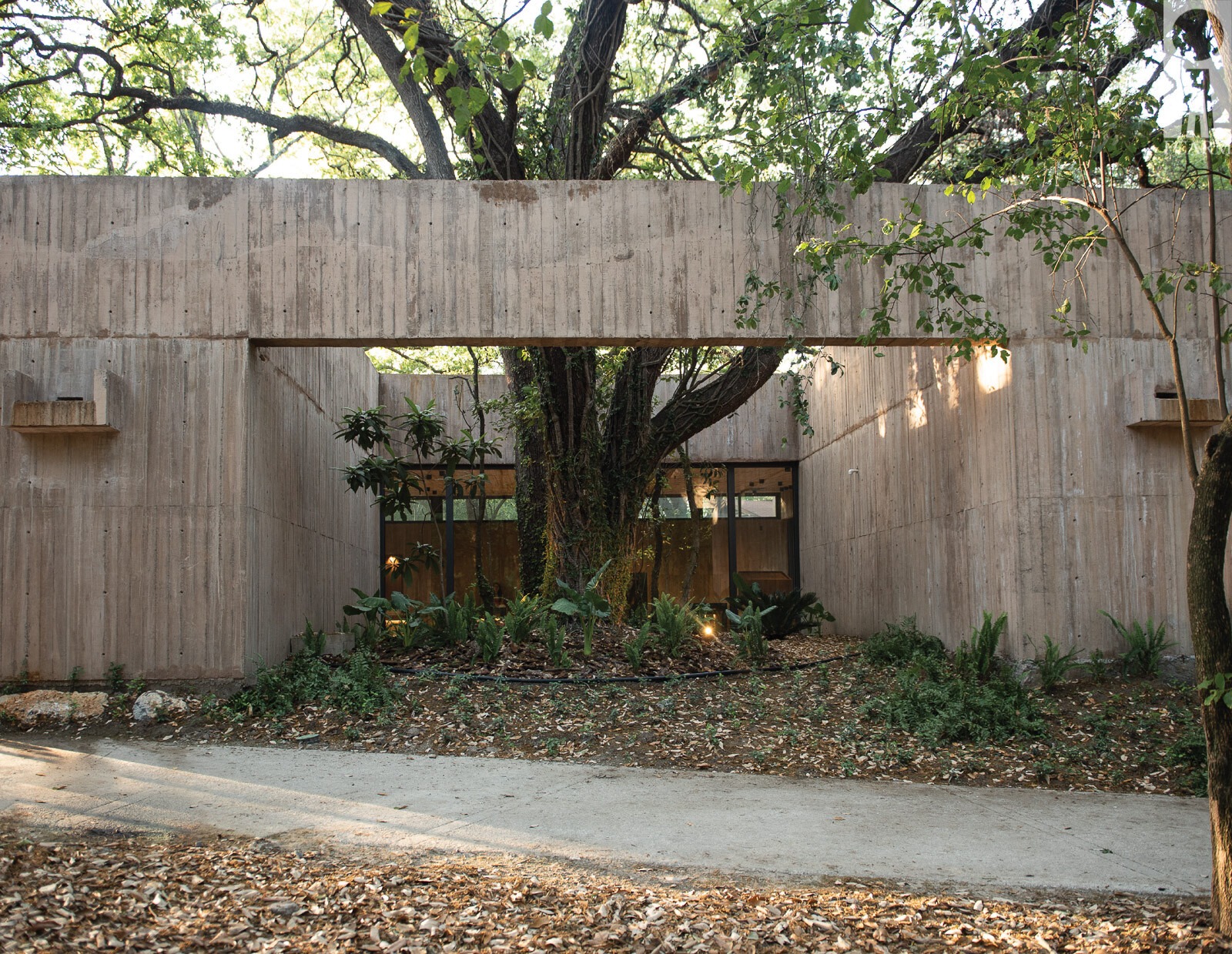 Por su parte, el interior se diseñó para conectar con los atrios exteriores a través de paneles corredizos de cristal acanalado que se ocultan por completo.