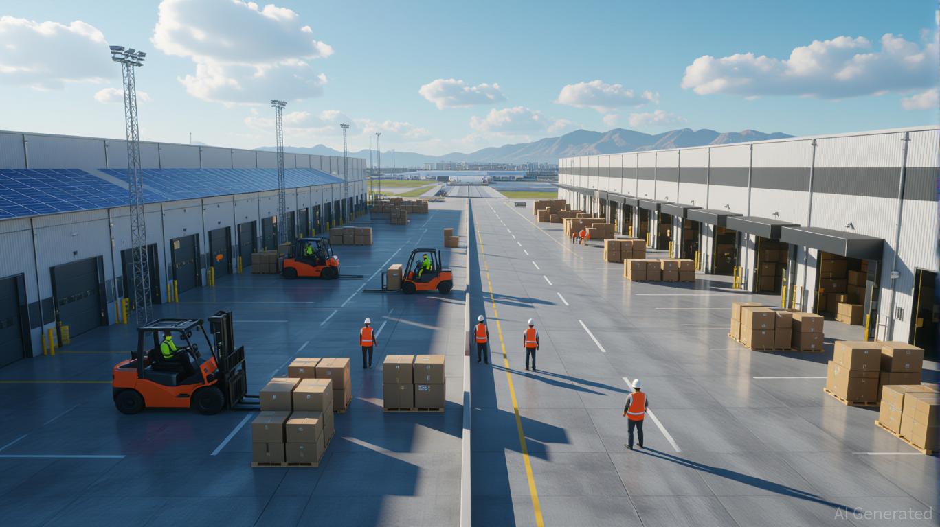 venue/architecture Edificio industrial con trabajadores y montacargas. Inmobiliare Summits presenta lo último en inmuebles industriales en México y LATAM.
