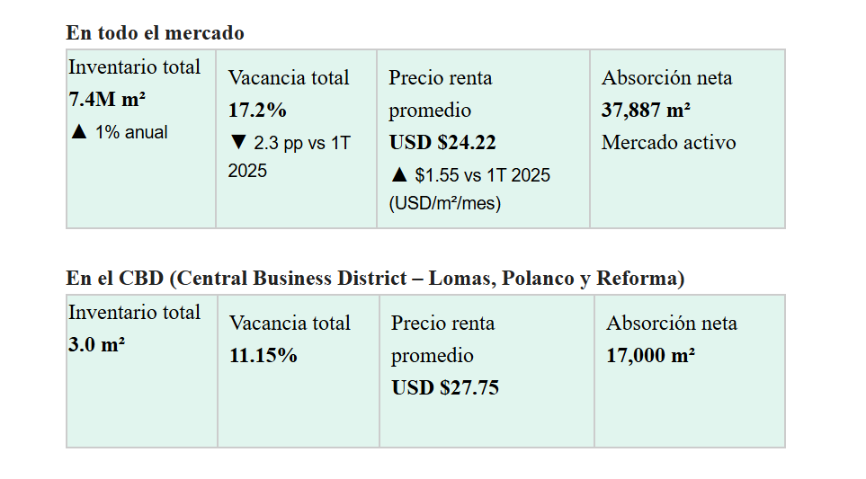 El mercado de oficinas en la Ciudad de México sigue mostrando una recuperación sólida en 2026. La reducción en la vacancia, el aumento en precios y una demanda constante están impulsando nuevas oportunidades para empresas e inversionistas.