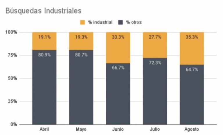 El real estate industrial mantiene su papel de motor estructural: representa el 25.4% del inventario en nuestra plataforma, con un récord de casi 12 mil espacios acumulados en lo que va del año. En lo que se refiere a la demanda, su participación digital escaló al 35% en agosto y las búsquedas prácticamente se duplicaron respecto al mes previo, cuando los anuncios internacionales y ajustes arancelarios parecían haber enfriado temporalmente el ritmo.